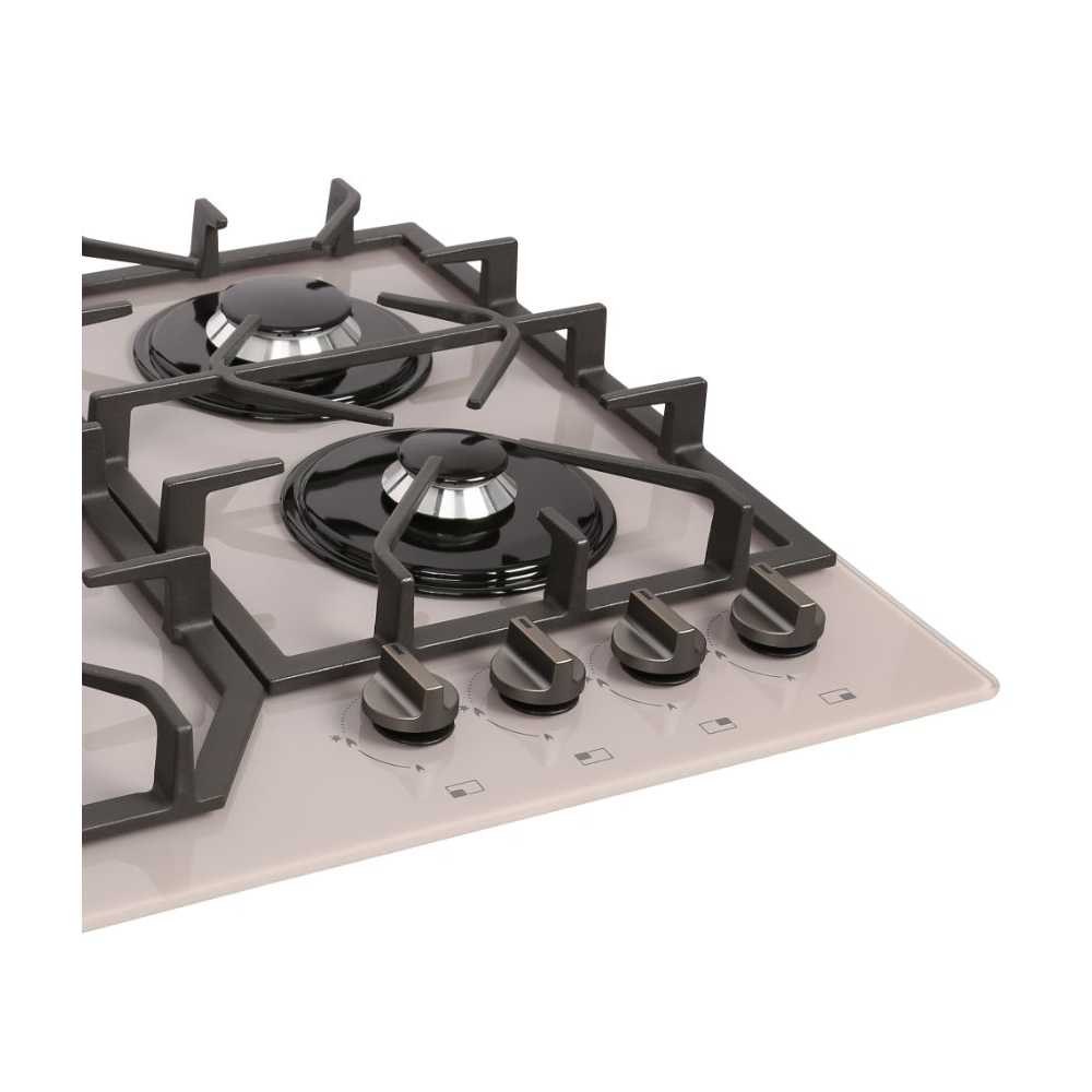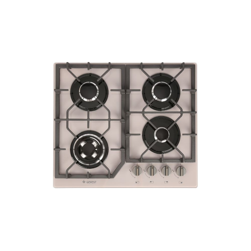 - Тип конфорок/зон нагрева: газовые стандартные (3 шт.), газовые «Двойная корона» (1 шт.)